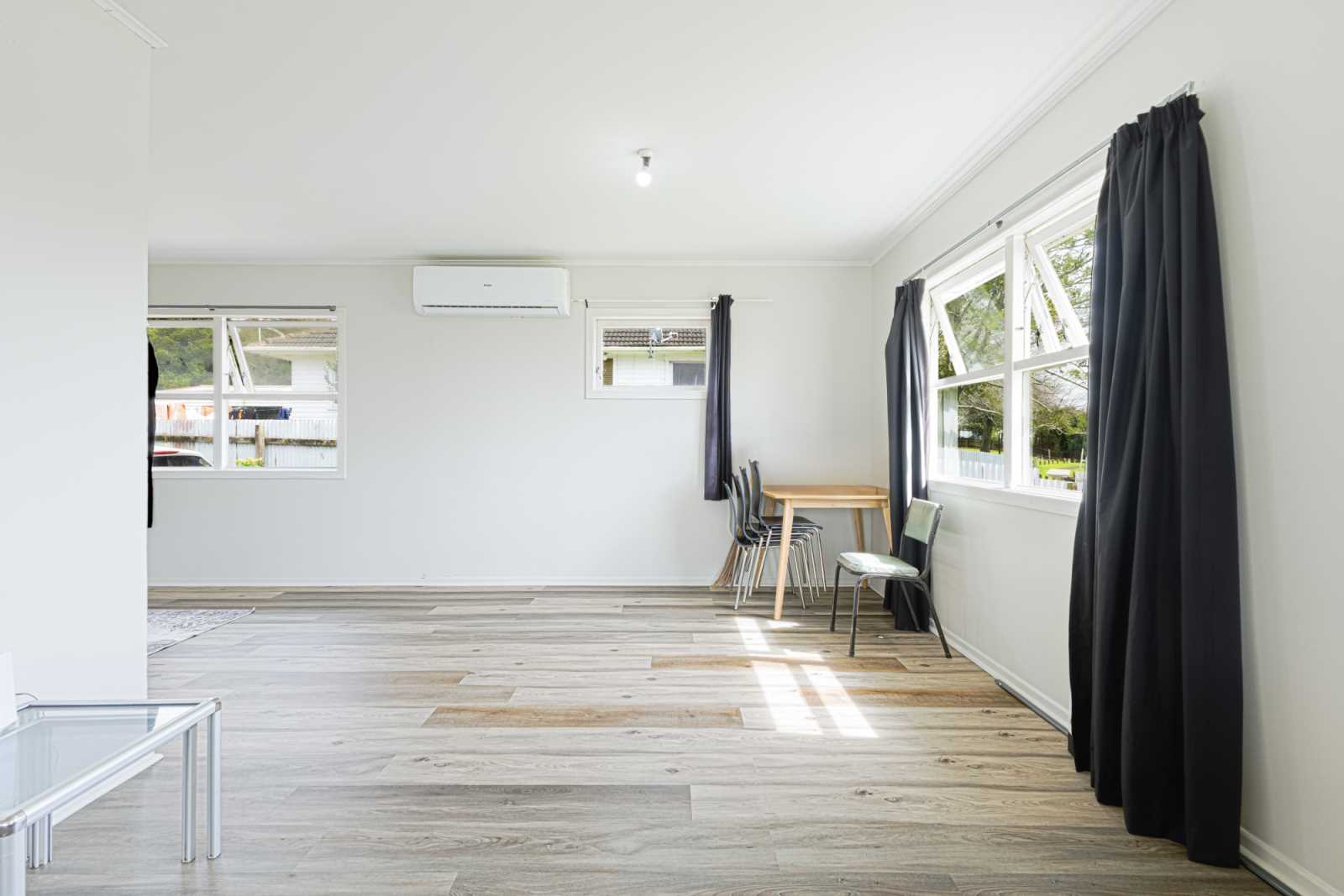 This beauty has native wooden floors and very tidy decor. It also boasts an open-plan kitchen, dining, and lounge.