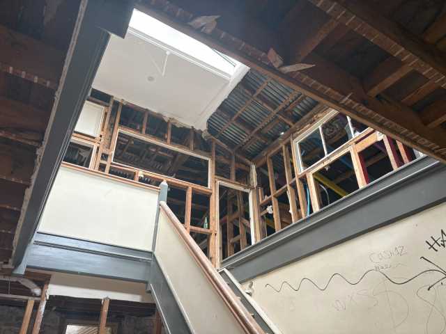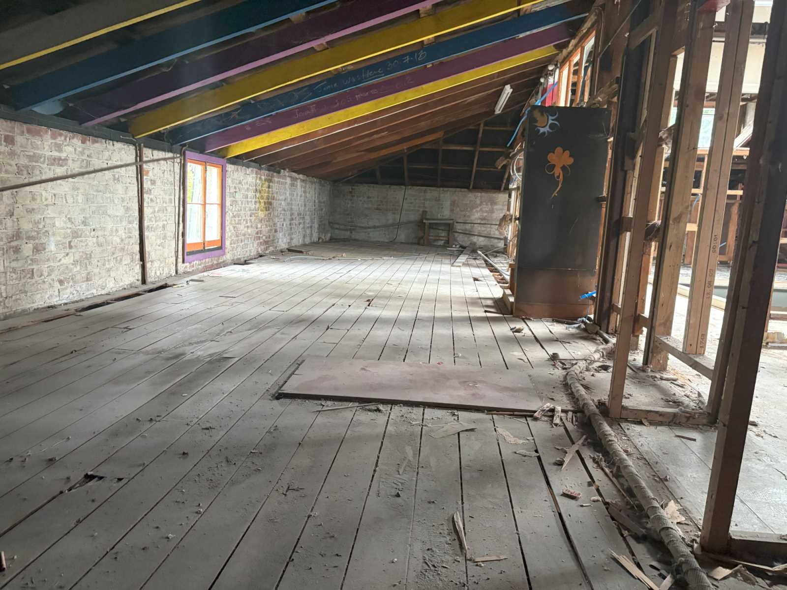 We have taken much of the risk out of the building by clearing it out, getting a plan for minor earthquake fixes, and insurance along with some quotes for new roof and wooden windows. You then have a large, solid, beautiful building with 6.2 m height ready to create some stunning spaces.