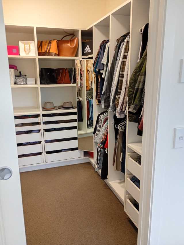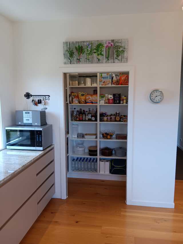 The house consists of a large open plan living area with divider shelving separating the dining/family area from the lounge, a separate craft room off the dining area, a large kitchen with a double sink, dishwasher, large 900mm electric oven with 5-burner gas hob, and a spacious walk-in pantry. There are four double bedrooms, one of which having its own entrance at the front of the house, which could be used as an office. All bedrooms (apart from master) have large wall-length wardrobes with plenty of shelving. The master bedroom has a large walk-in wardrobe and an en-suite bathroom with under floor heating. All rooms have an abundance of power points. There are power points and water outlets on the outside corners of the house for easy garden maintenance.