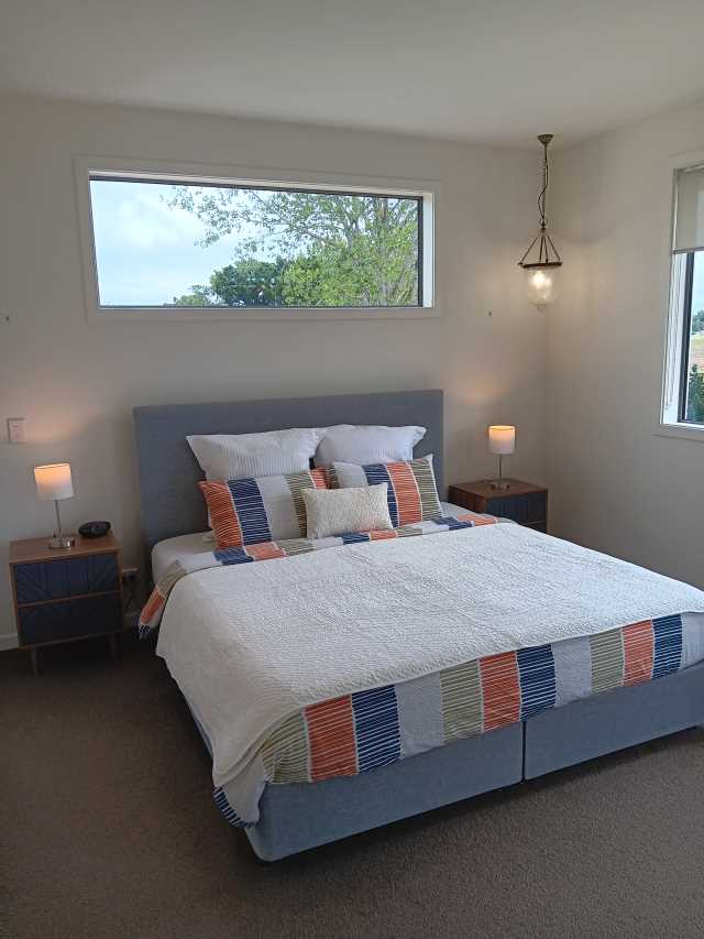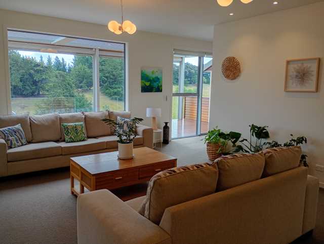 A spacious north-west facing private deck with access off the master bedroom, family area and kitchen has automatic louver roof and shade/blind systems and has views to open countryside, the Kakanui Mountains and beautiful sunsets.