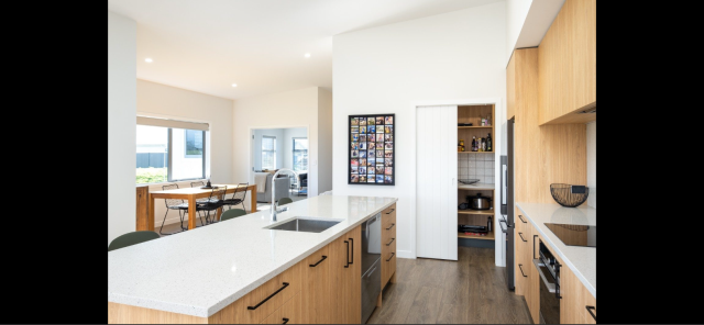 Completed in 2023 on a lovely corner lot, this stunning family home features a well-designed floor plan with brilliant proportions and high-quality finishes. The expansive main living area with high raking ceilings is bathed in natural light, creating an inviting space ideal for family connections and entertaining. The timber flooring complements the kitchen, which boasts natural finishes, stone benchtops, top-tier appliances, and a spacious butler's pantry for added convenience. Two sets of stacking doors open onto a generous north/west-facing deck, an ideal spot for savouring a glass of wine from a nearby vineyard while watching the sunset.