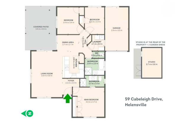 59 Cabeleigh Drive offers three bedrooms, two bathrooms, and a separate studio, with a layout that balances comfort, practicality, and flexibility.