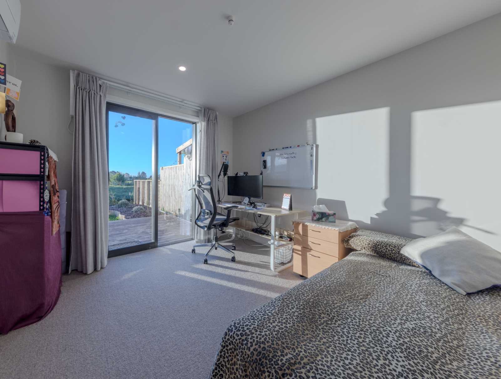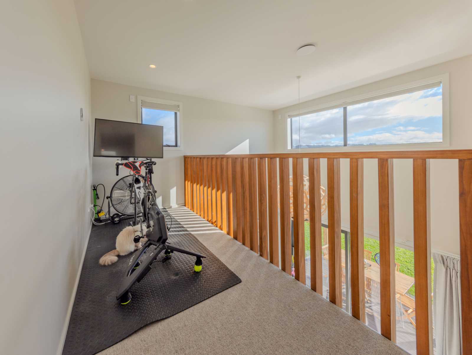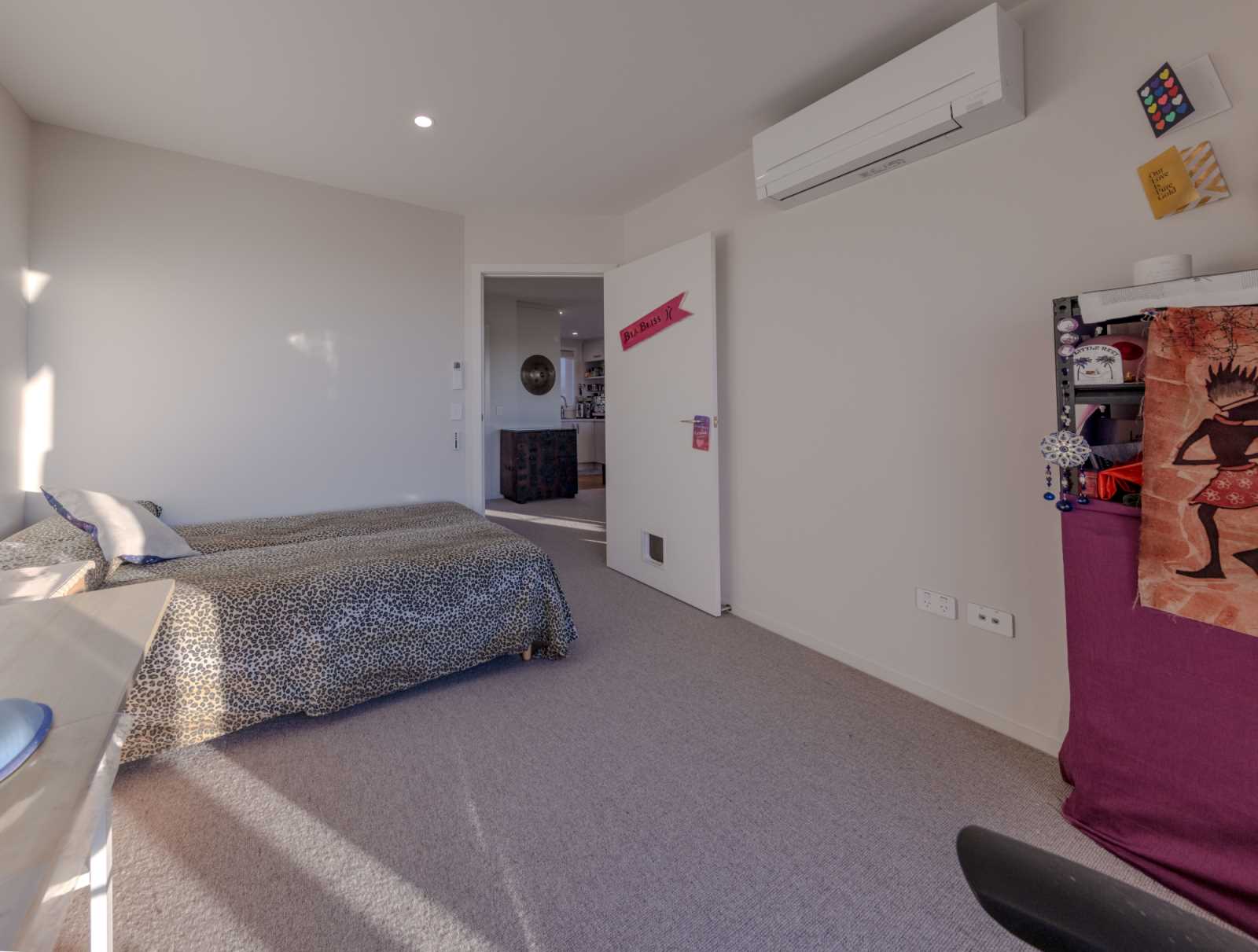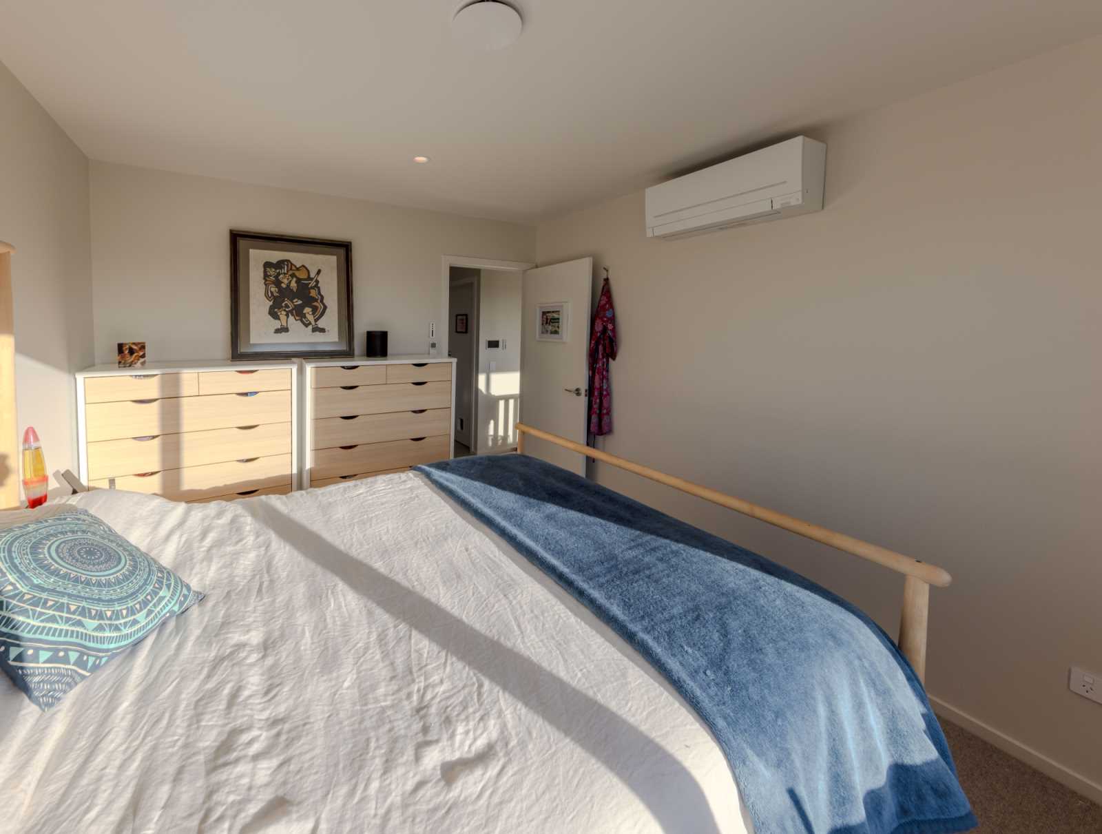 Four Wi-Fi–enabled Mitsubishi heat pumps (one per bedroom + lounge) plus SmartVent Synergy 2 heat-recovery ventilation. Motorised blinds/curtains, low-e thermally-broken windows, and added internal soundproofing—peaceful when you want quiet, cosy when you host.