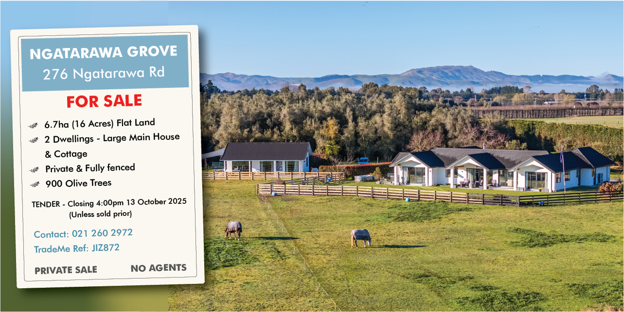 6.7ha of flat land 10 mins from Hastings. Fully fenced. Driveway & Dwellings are Post and Railed. Electric Security gates.