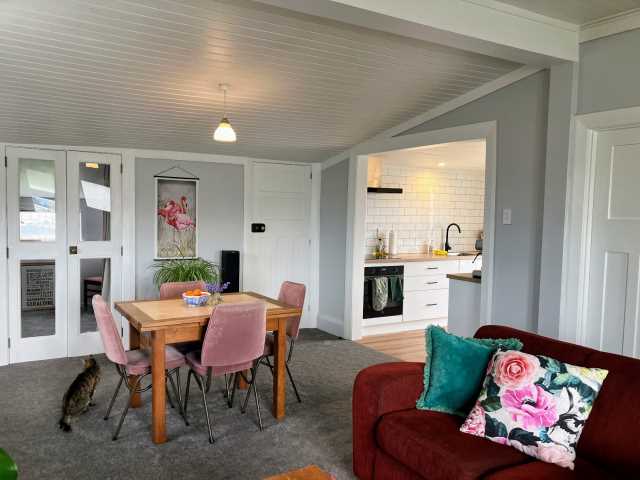 Renovated cottage, full of character. One of the oldest remaining in Geraldine. Two bedrooms and a useful studio room outside as well as two small sheds. The bathroom and kitchen have just been renovated and there are new carpets and flooring throughout. The verandah has been rebuilt, and much of the flooring and the rear bathroom wall have been replaced. The exterior has been recently painted. There is retro fiited double glazing on the majority of windows. Large new heat pump installed. New fences and hard landscaping completed. North facing with all day sun. Cute and cosy and walk-in ready.