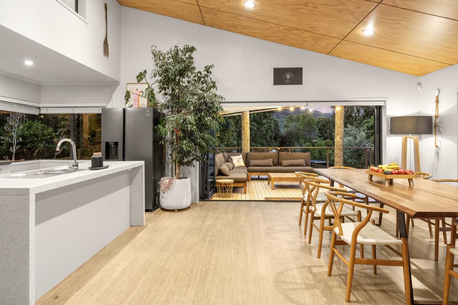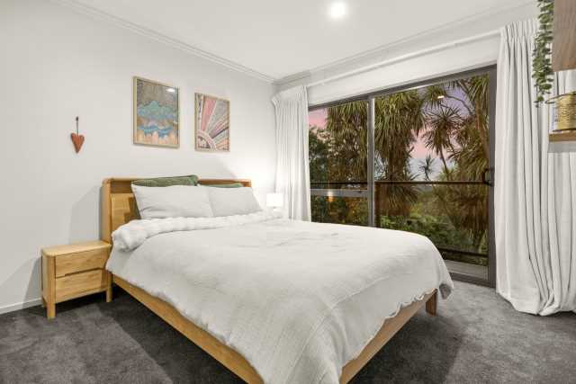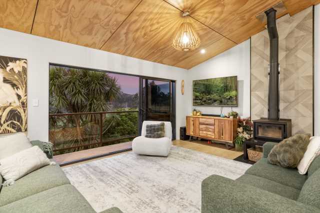 Escape to your own private sanctuary in the Papamoa Hills — this welcoming 5-bedroom, 2-bathroom home is perfectly nestled among native bush, offering connection with nature from every room and sea views from the upper level. Wake up to the sound of birdsong and unwind on the wrap around decks in complete tranquility, surrounded by nature yet just a short 12-minute drive from the beach, schools and town. With two spacious living areas, this home is designed for relaxation, providing space and serenity in equal measure.