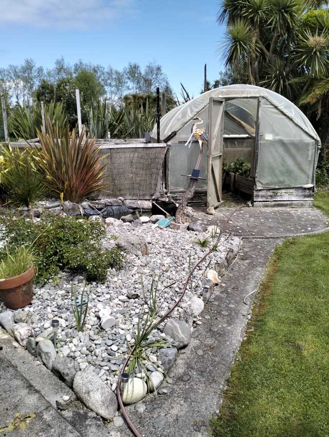 2 bird aviary's a small fish pond greenhouse lots of fruit trees