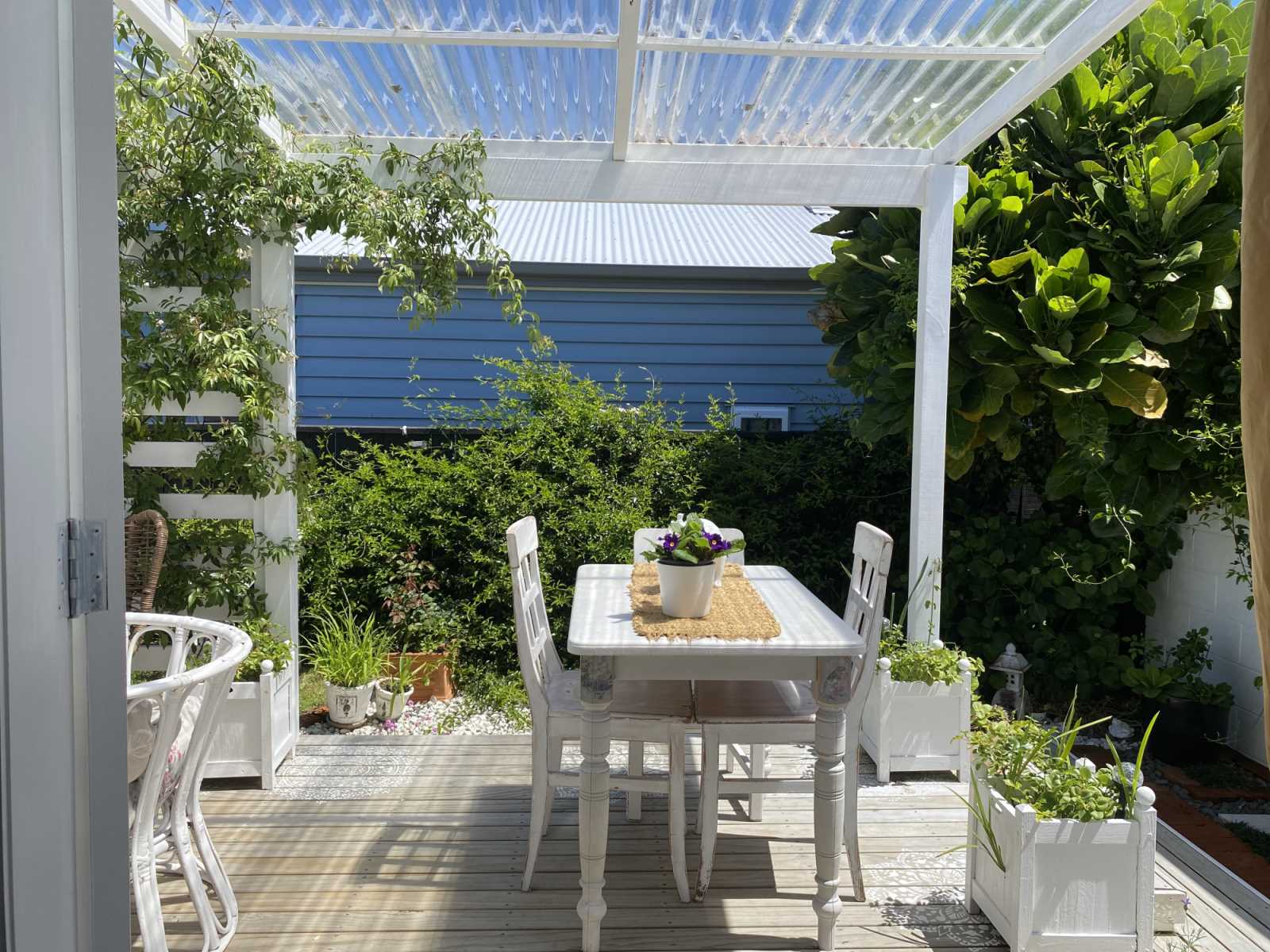 ~A sun-drenched back deck with a roof for year-round lounging