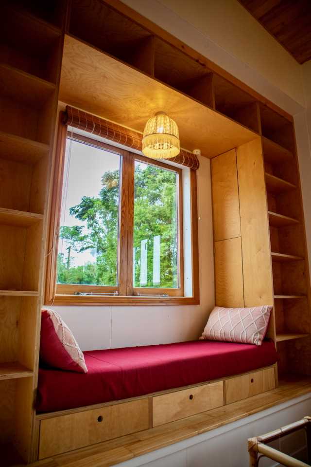 A two-storey tiny house built with extraordinary care and natural materials, designed to support wellbeing. This light-filled home offers clean indoor air, a vapour-open wool-insulated envelope, solid timbers, and a warm, calming atmosphere. Its level of environmental support is incredibly rare in conventional tiny-house builds.