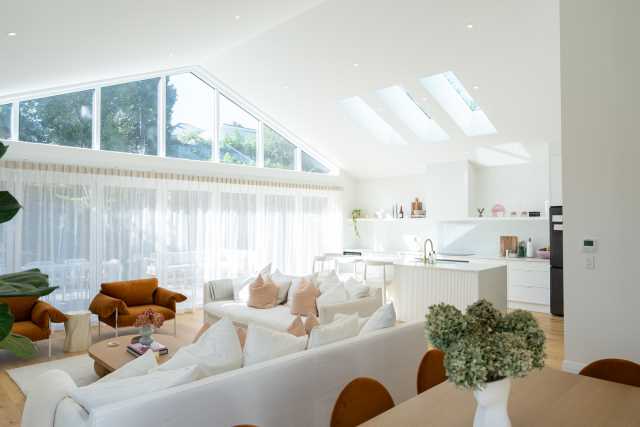 Open plan luxury encompassing the dining, lounge and kitchen. Very light, bright and airy. Off the side of the kitchen is the butlers pantry.