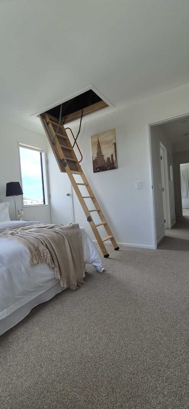 The lounge is relaxing and generously sized with huge tri-sliding doors which seamlessly flow out onto a picturesque courtyard with parklike views. Upstairs hosts two large bedrooms complete with deep wardrobes plus an additional storage cupboard in each room! With easy pull down attic stairs, loads of additional storage space to be created in the ceiling is also unlocked for your convenience! Fully insulated with double glazed windows, a heat pump - great for all year round!