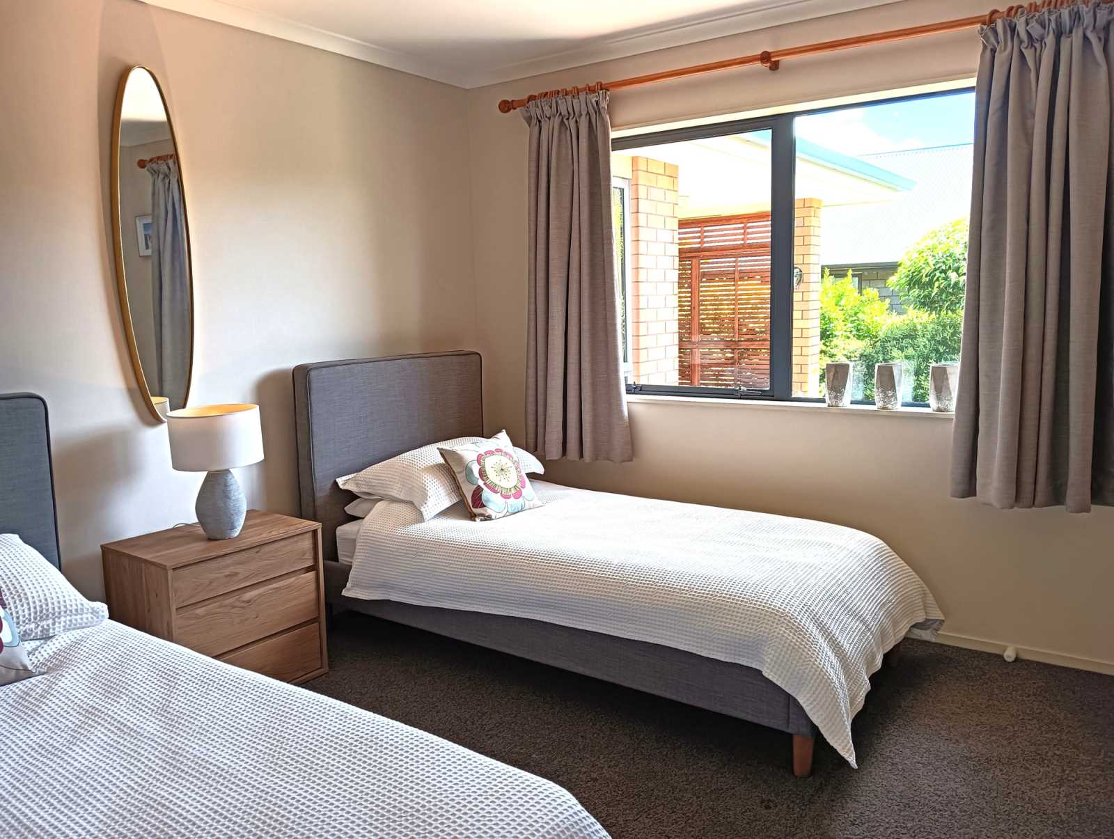 The property is fully fence with automatic double gate at the front of the property. Wrapped around the house is a well established garden with small shrubs and native planting, with raised bed areas with fruit tress and vegetables. A garden shed easily houses room for a lawn mower and tools. Three rainwater harvester tanks cater for the summer months. The back of the property looks directly onto horse grazing paddocks and the landscape of Lepperton.
