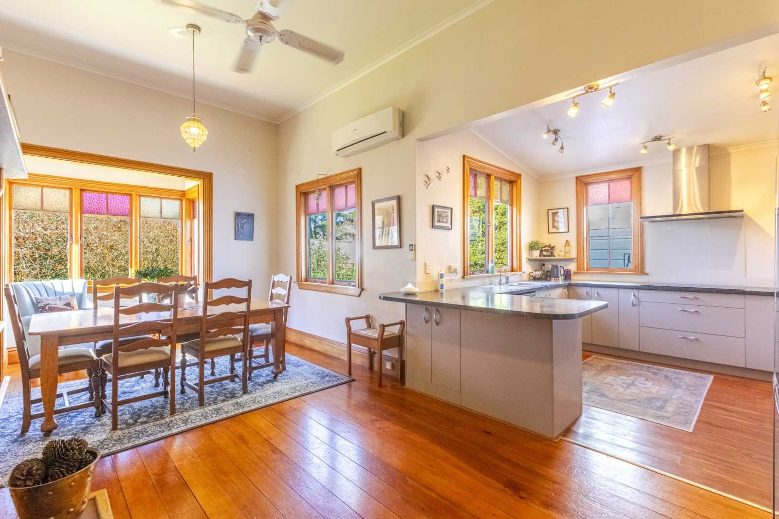 Maple Grove - as it's commonly known - was built around 1910 from the finest native timbers and has been lovingly maintained ever since. It boasts soaring timber ceilings, ornate fire surrounds, and character details. A careful approach to modern comforts while preserving its heritage charm has been undertaken. This includes a sympathetically styled kitchen, four spacious bedrooms, two full bathrooms, two wood-burners, three heat pumps, gas hot water, and an internal sprinkler system. The living spaces include a kitchen/diner and family lounge, with separate formal dining room. Wide, rolled-roof verandas and a selection of outdoor entertaining areas, including a charming brick courtyard, are special features. All set within established 1.17-hectare (2.9-acre) grounds with picturesque cottage gardens, mature trees, and paddocks ideal for ponies or pets, The property benefits from multiple water sources - a well for irrigation and troughs, a roof-fed tank, and town supply - ensuring year-round continuous supply. Outbuildings include a double garage with automatic door, a studio with heat pump, a workshop, and a utility room, providing space and flexibility for creative or rural pursuits. Conveniently located on the