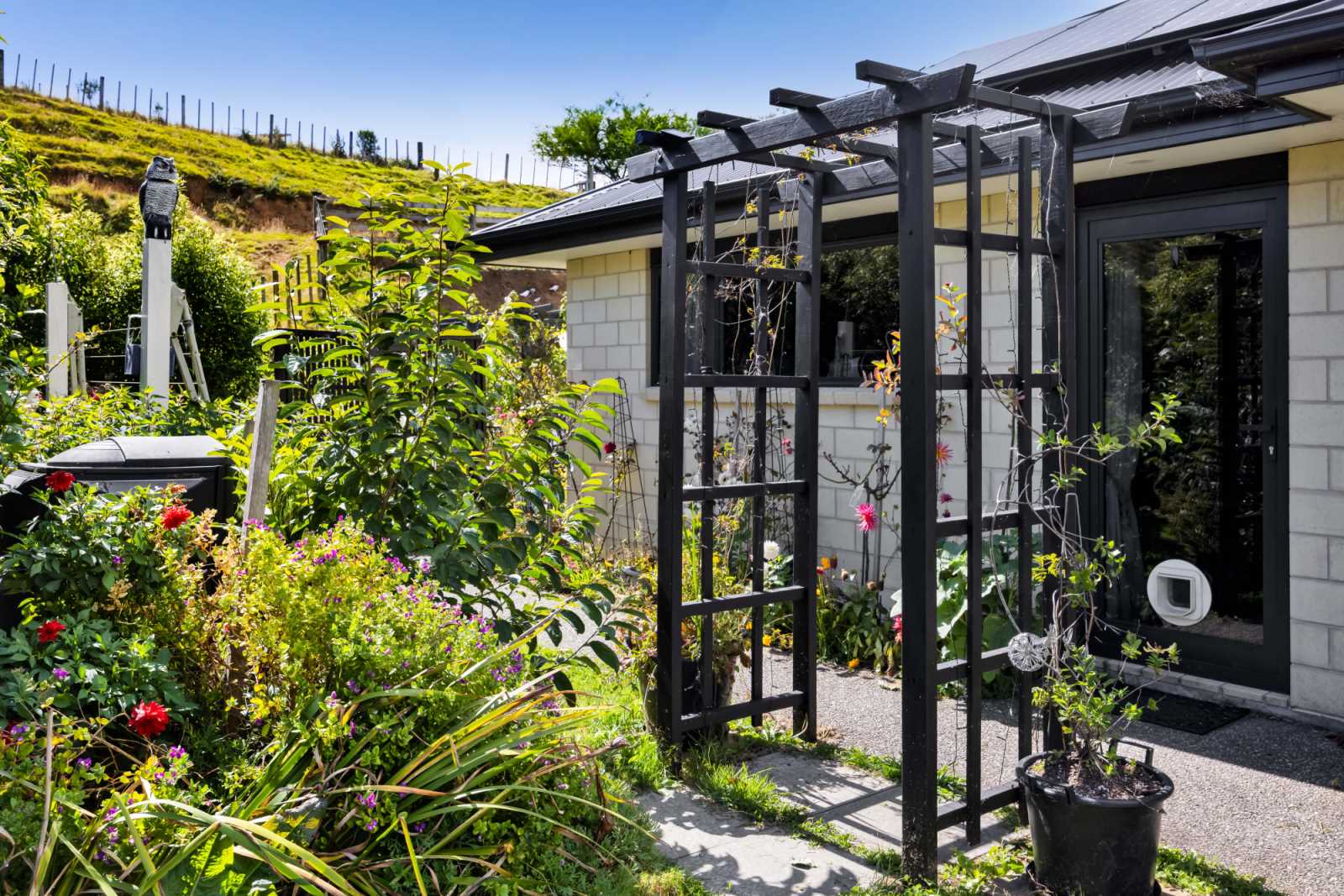 Solar panels. Native bush. Patio. Enclosed Garden.