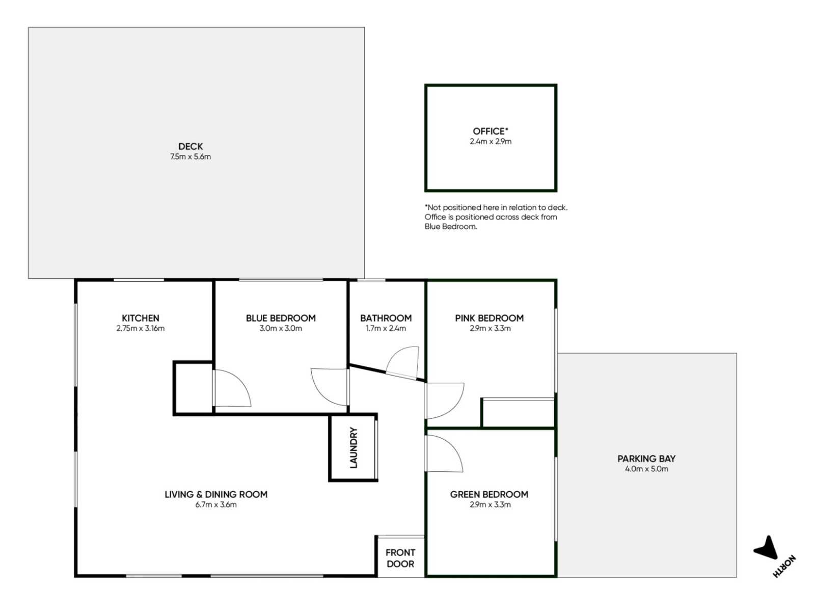 A very cool stand-alone office/sleep-out joins the large deck, featuring a wall of cork from Portugal. Complete with power and internet, it has made a perfect work-from-home space for us, but would also suit a teenage pad or additional single bedroom.