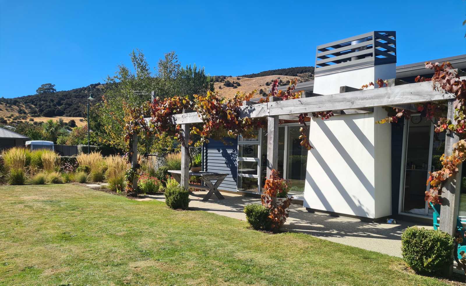 Set in a designer garden with mountain vistas, this north facing, light family home provides a private sanctuary away from the hustle and bustle but close to town.