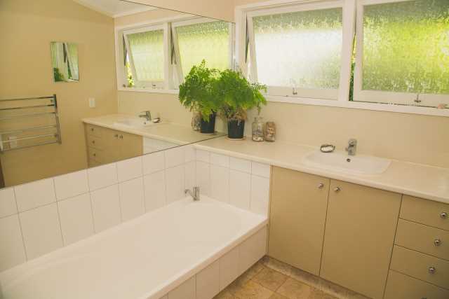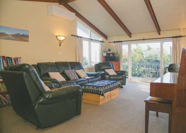 The house is insulated and kept warm in winter by two heat pumps. The bedrooms have double-glazing windows. Recently installed hot-water heat pump keeps the energy costs down. The kitchen has been updated with newer appliances.