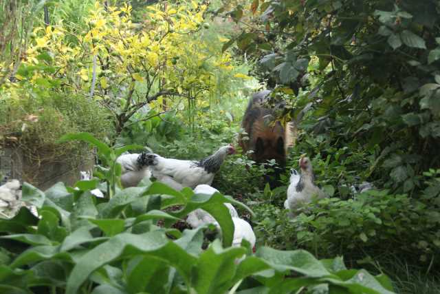 This quarter acre food-forest property has been lovingly cultured and maintained for the last thirteen years by following permacutlure and organic principles. It provides abundant foods year around including fruits, nuts, vegetables, herbs, and eggs.