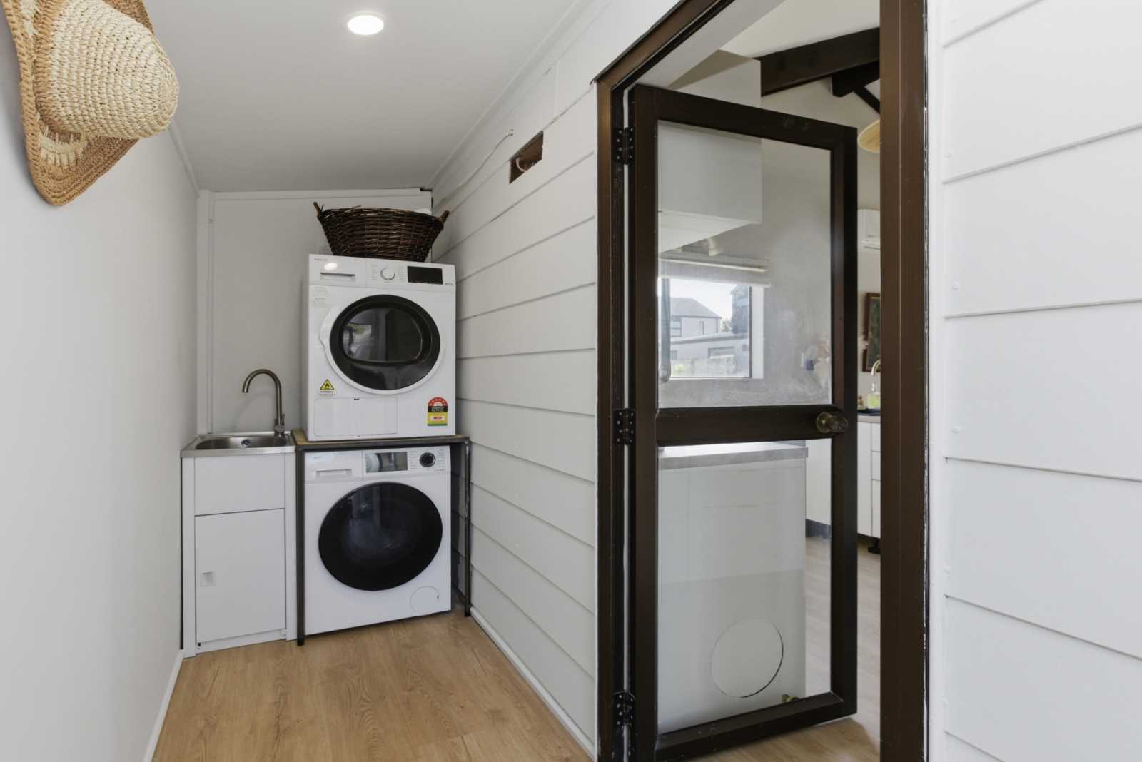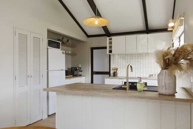 The large cathedral ceilings, together with generous double bedrooms, built in wardrobes, and separate laundry create a sense of space around the open plan north facing living layout, all without compromising on warmth. The main dwelling has a large heat pump, heat lamp in the bathroom for relaxing baths, and panel heater in the second bedroom, making heating cost-effective and effortless.