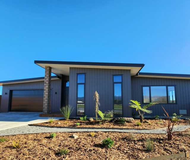 Outside, the fully fenced section offers a generous lawn area and landscaping with native New Zealand planting, creating privacy and an easy-care outdoor environment.