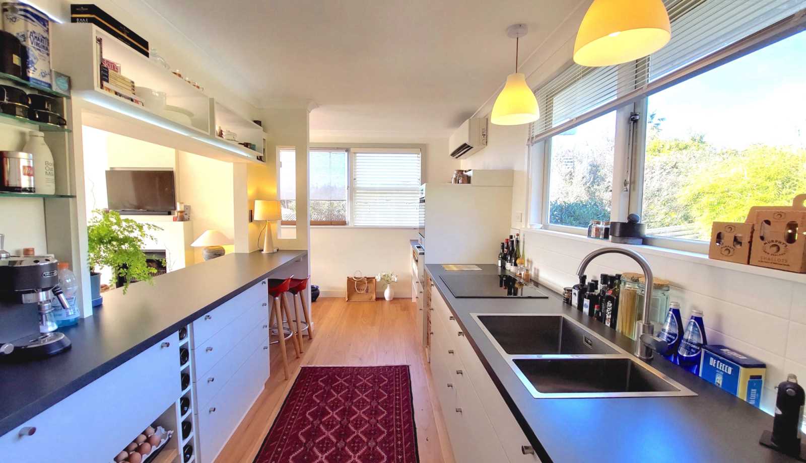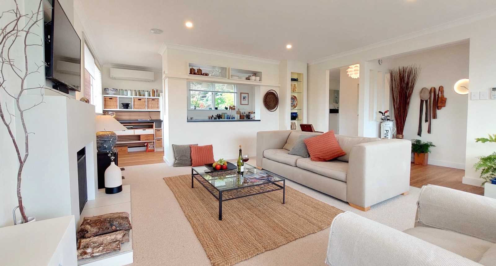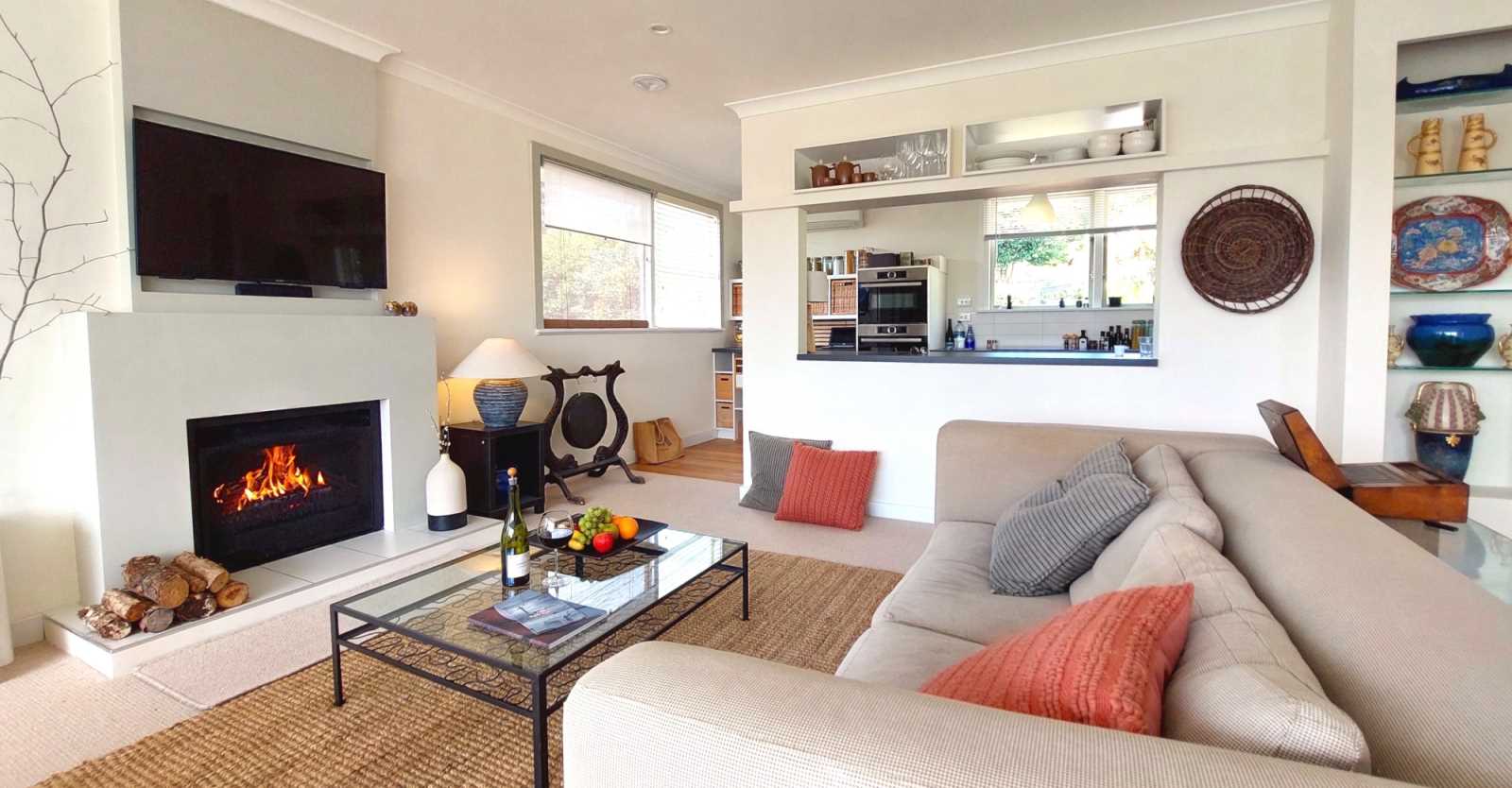 Inside, three well appointed bedrooms and two luxurious bathrooms offer comfort and style. A premium German kitchen anchors the open-plan living space complimented by a separate laundry. Climate-control features include three designer heat pumps (with wifi option) a wood burner and a HRV system.