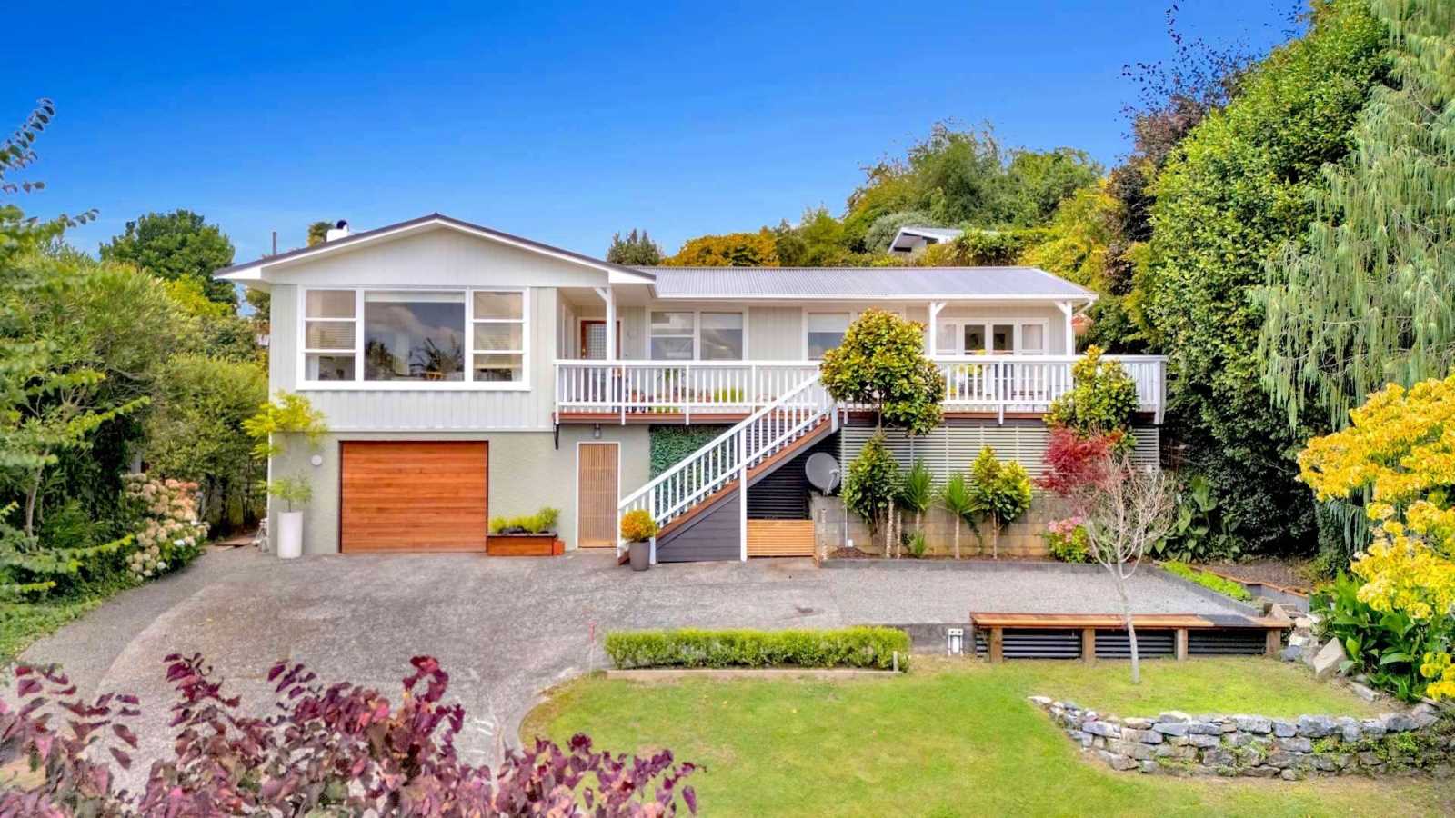 Privately nestled in a sun-drenched, north-facing setting, the home enjoys elevated views across Taumarunui's rolling countryside. Woodland-style steps rise from the street guiding you through native plantings to a home that feels grounded and serene.