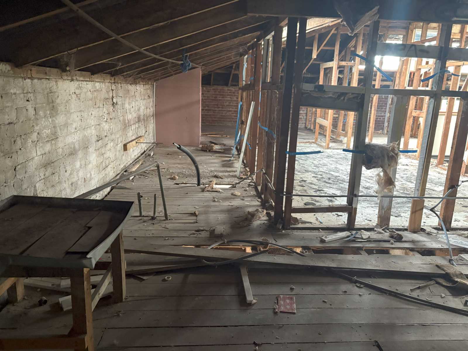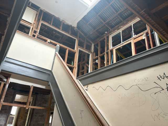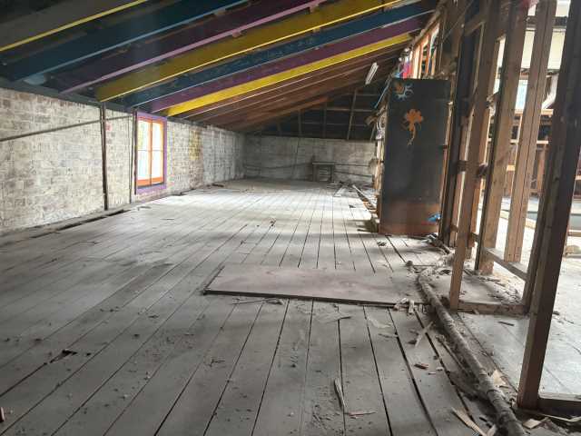 We have taken much of the risk out of the building by clearing it out, getting a plan for minor earthquake fixes, and insurance along with some quotes for new roof and wooden windows. You then have a large, solid, beautiful building with 6.2 m height ready to create some stunning spaces.