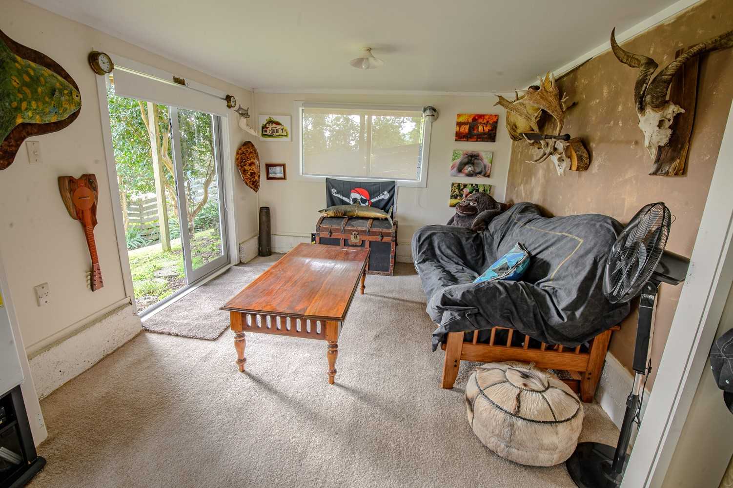 From Tapeka Point, Russell, and the Black Rocks across to Moturoa Island, Waitangi Golf Course, Waitangi River, Bledisloe Domain, and Haruru Falls — this sun-drenched three-bedroom home is a rare gem, combining stunning sea and rural vistas in one unforgettable package.
