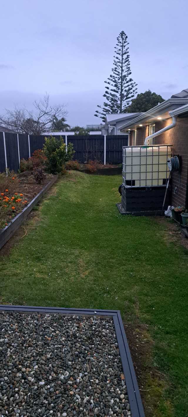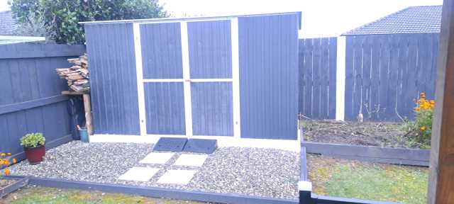 Large garden shed installed and a Rain water tank set up for the gardens.