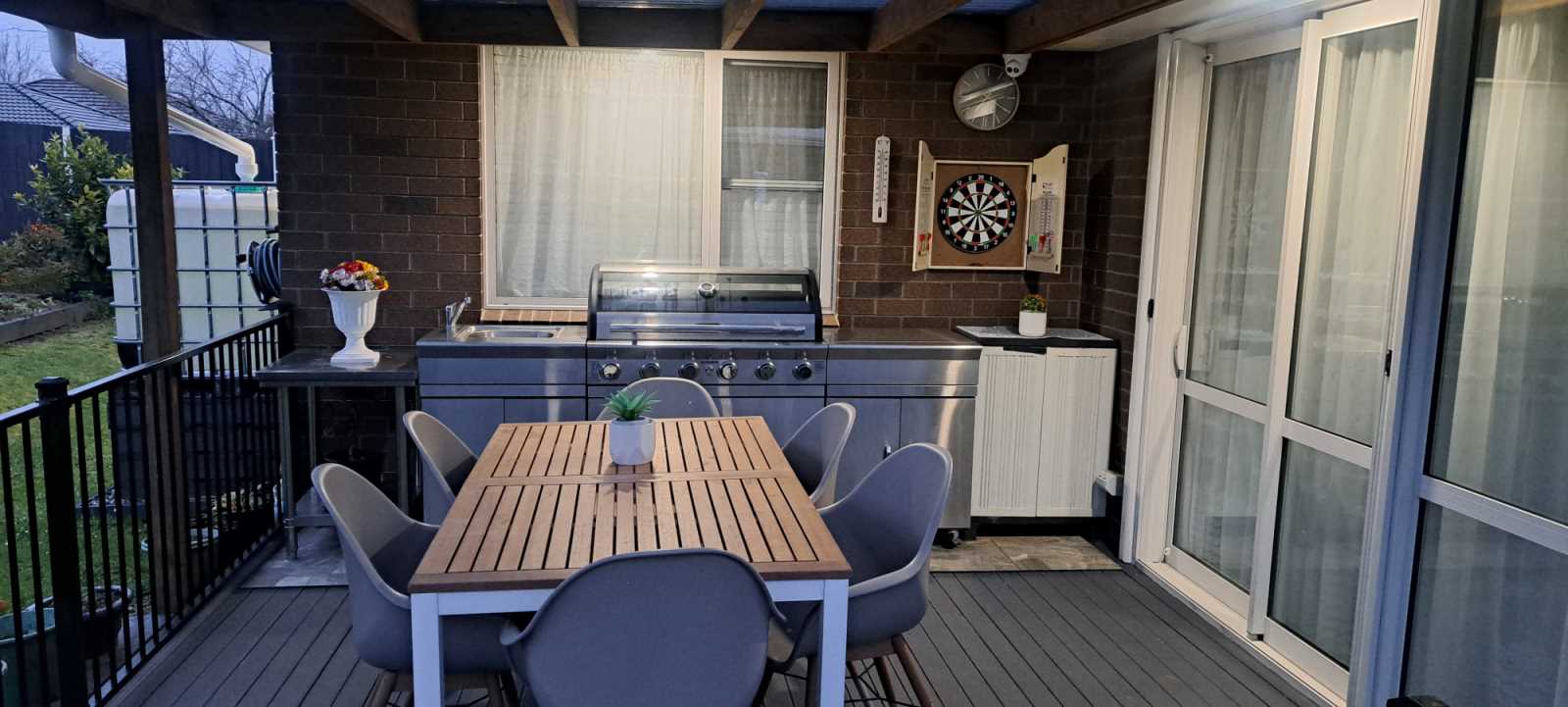 Pergola built on rear of house which also includes a full BBQ kitchen set up.