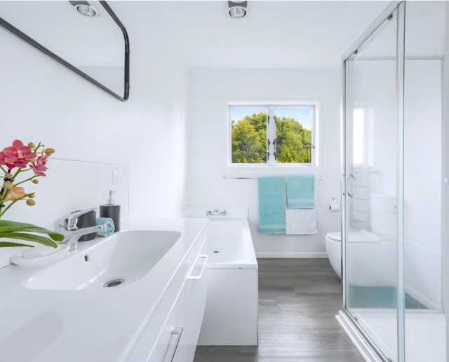 The upper level of the home has continuous modern wooden flooring for easy care. All three bedrooms include fitted cupboards and have large windows which show off the impressive tree lined gully vista.