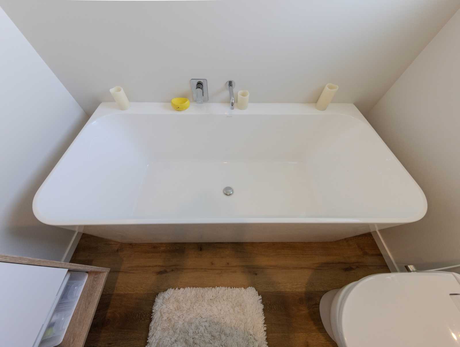 Two full bathrooms: downstairs full shower for easy single-level living; upstairs generous shower + oversized two-person bath; toilet with bidet. Bosch Series 6 washer/dryer in your private laundry (no waiting for or walking to the communal laundry—unlike most other units).