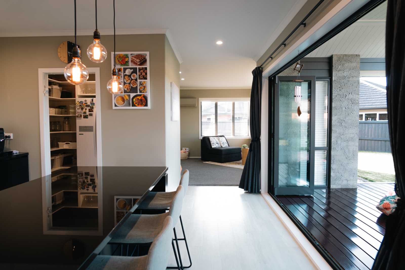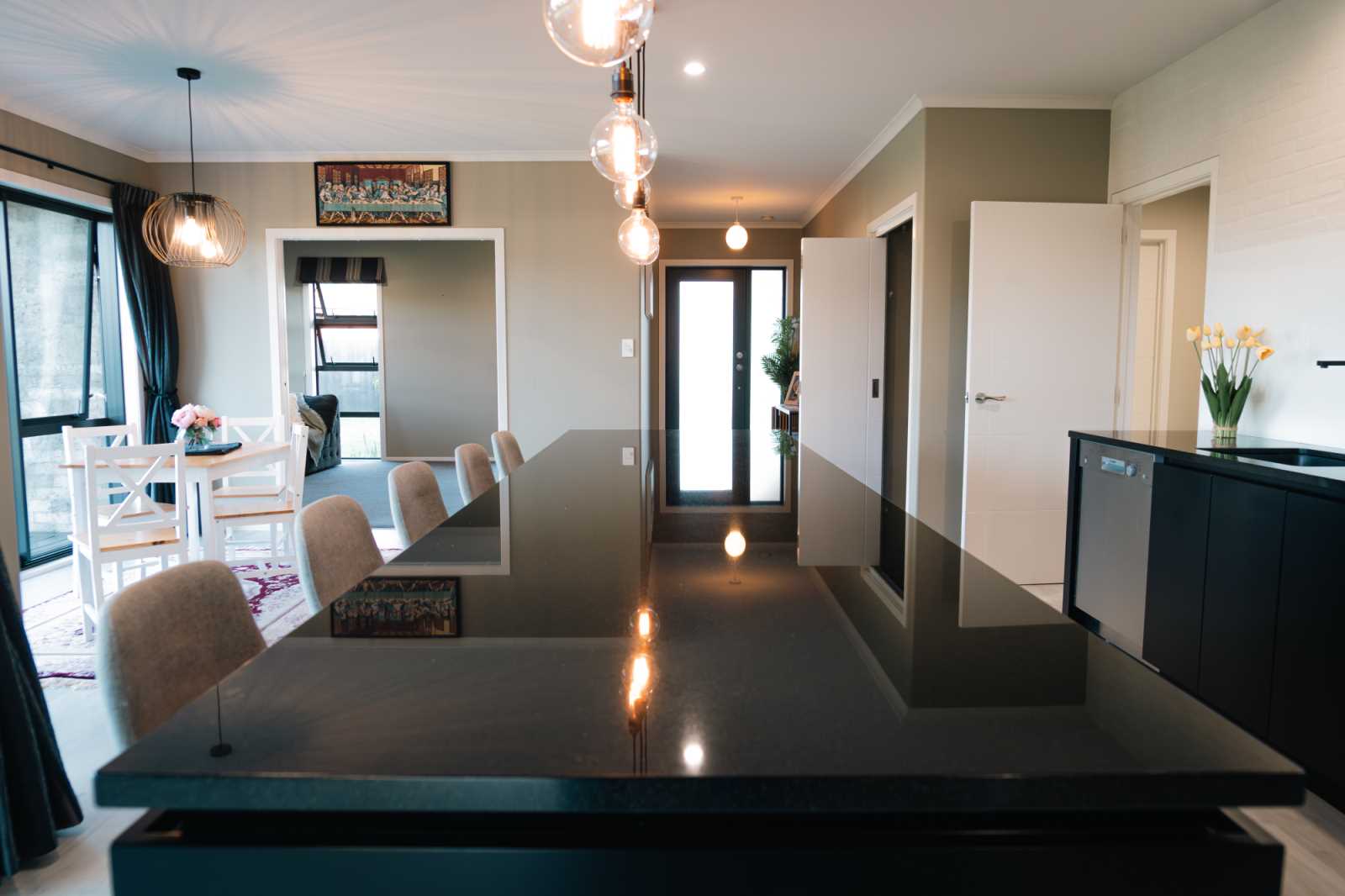 Scope to entertain has been prioritised, with the kitchen serving as a central hub for get-togethers. A tucked-away office nook provides a convenient workspace without encroaching on the main living areas.