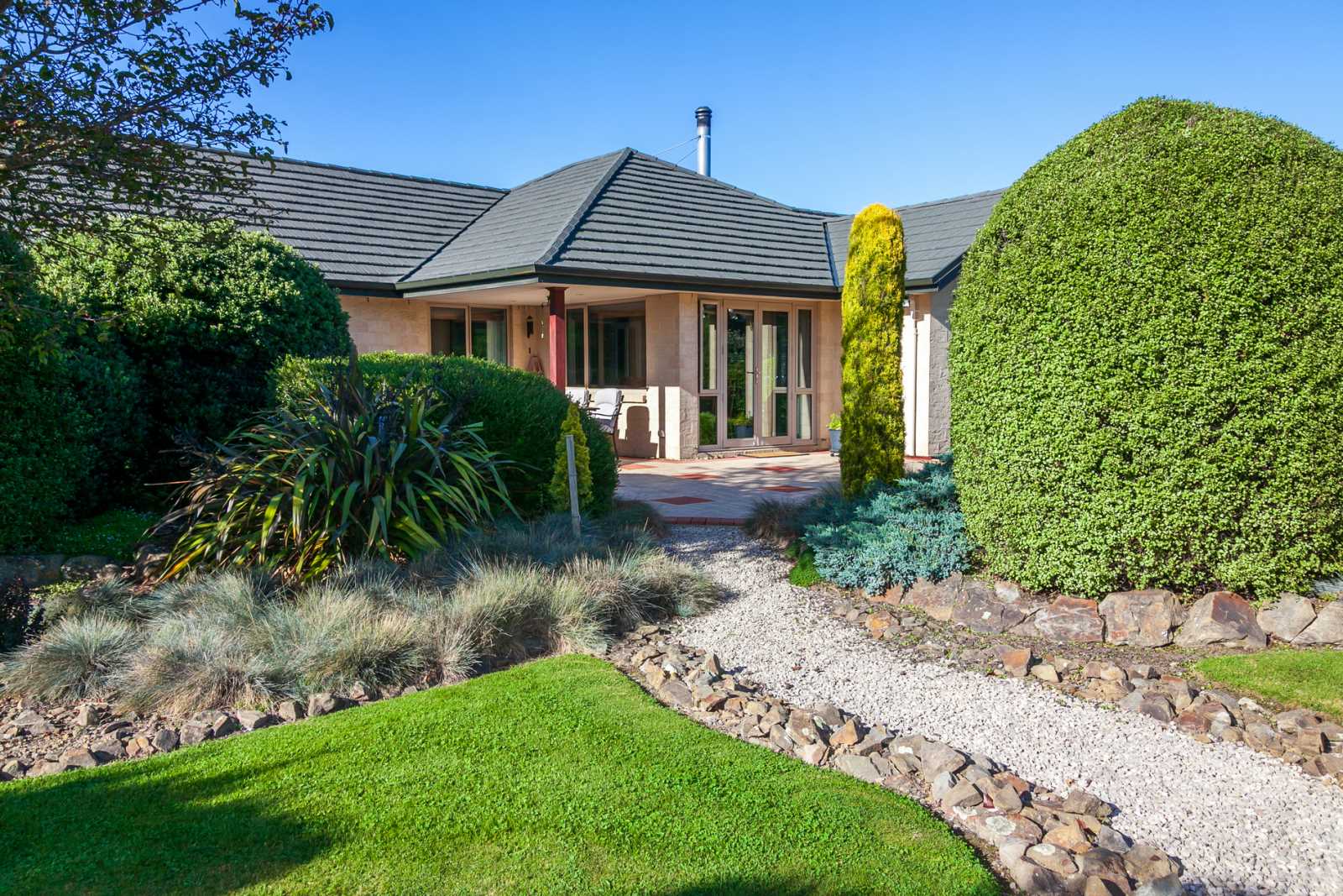Experience the pleasure of home-grown produce from the irrigated orchard, vegetable plots, herb garden, and berry patch. The landscaping is remarkably easy-care with predominantly native plantings. Completing the property are a 15,000L rainwater harvesting system, large woodshed, workshop/shed, and ready-to-go chicken coop.