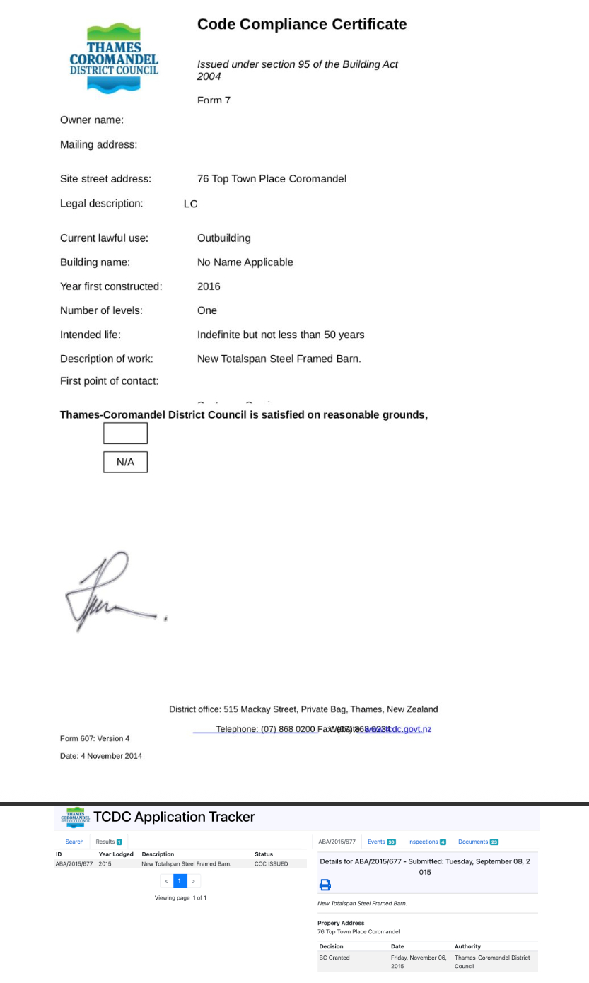PS Included docs of barn resource & council compliance, as homes.co.nz info is inaccurate.