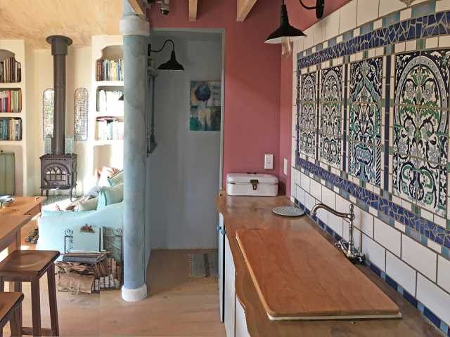 The Totalspan Heritage barn has been well insulated and is warm in winter and cool in summer. There is a Scandinavian Jotul wood burner to get cosy on extra cold winter nights. The main level features an open plan kitchen with European double sink and macrocarpa bench, plus a combined dining and lounge area.