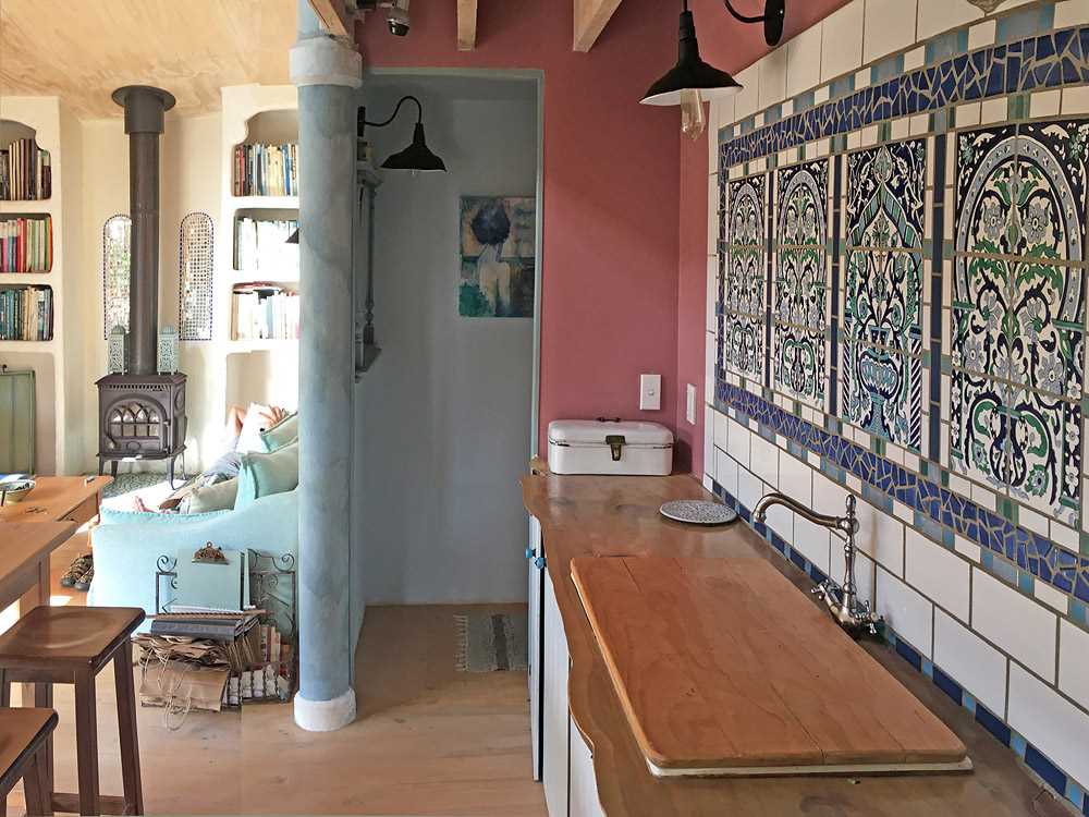 The interior has many artistic touches and has been designed with easy indoor/ outdoor living in mind.