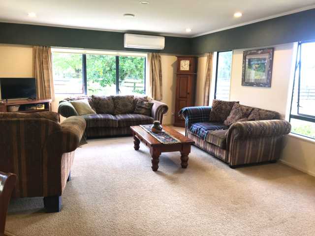 With this property, you’ll avoid water rates. There’s ample off-street parking in the middle of park-like grounds. Plus, you’re just out of town in a nice location — fifteen minutes to central Kerikeri, five minutes to Waipapa. With few visible neighbours, this property is a great combination of privacy, convenience, and countryside!