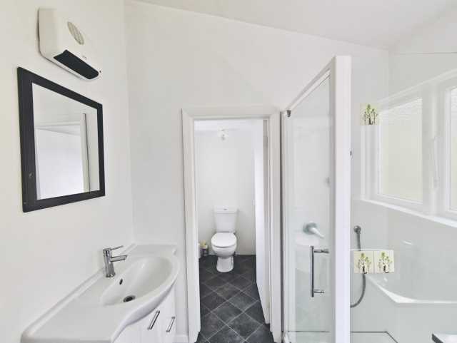 High stud ceilings create a spacious and airy feel, complemented by generously sized bedrooms. The open plan modern kitchen features a skylight that brings in excellent natural light.