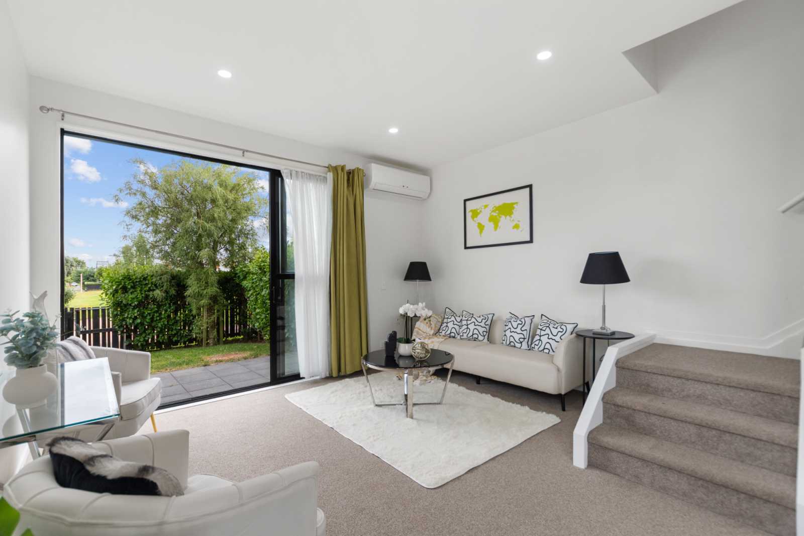 The lounge is relaxing and generously sized with huge tri-sliding doors which seamlessly flow out onto a picturesque courtyard with parklike views. Upstairs hosts two large bedrooms complete with deep wardrobes plus an additional storage cupboard in each room! With easy pull down attic stairs, loads of additional storage space to be created in the ceiling is also unlocked for your convenience! Fully insulated with double glazed windows, a heat pump - great for all year round!