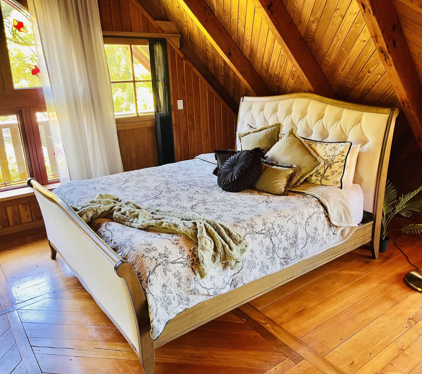 -2 large bedrooms with beautiful vaulted ceilings—Both rooms have lots of storage space and open up to their own balconies that capture sweeping rural mountain views.