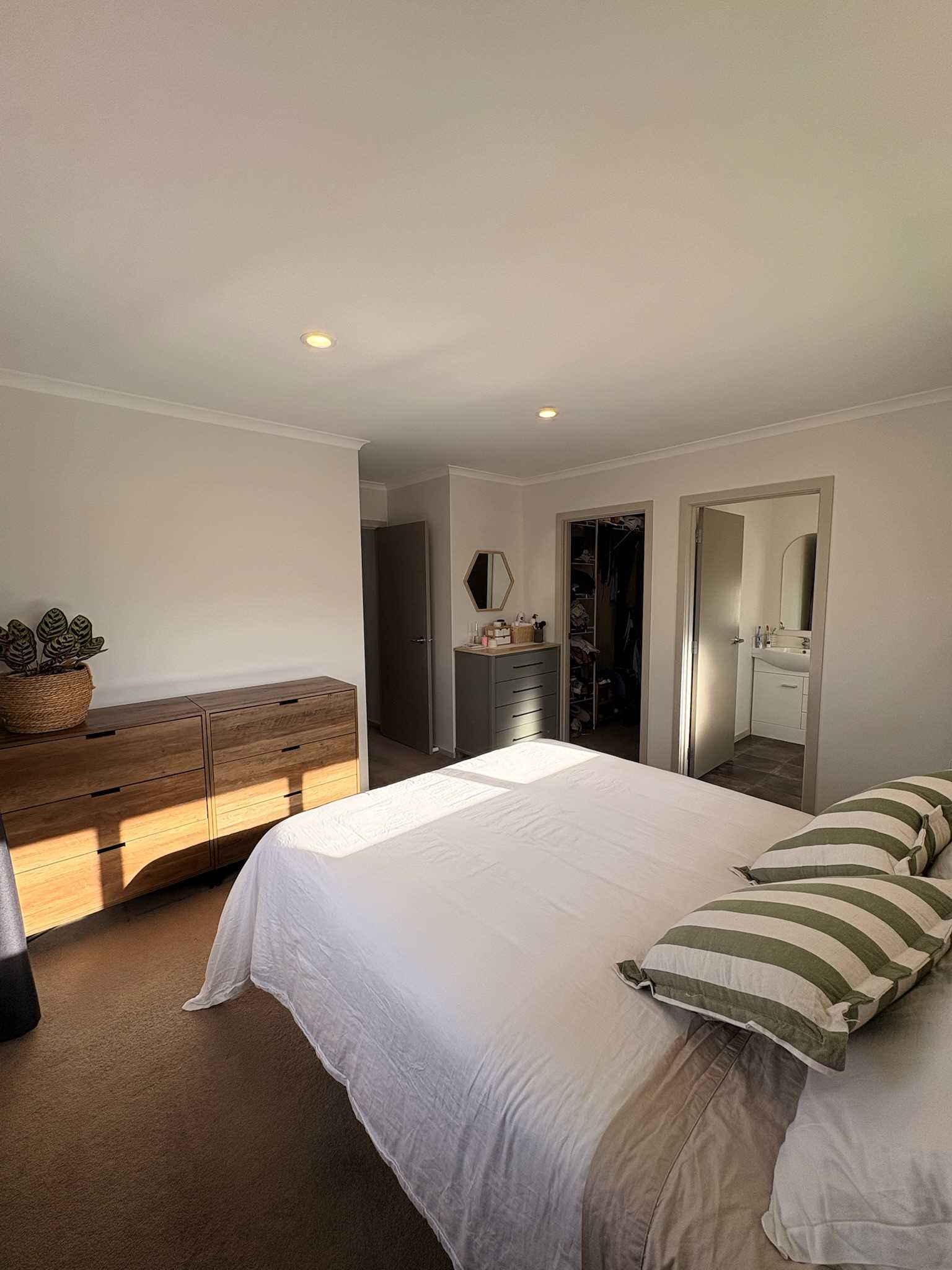 Inside, the two living areas are linked by a large open-plan kitchen. The spacious master bedroom is complete with an ensuite and walk-in wardrobe.