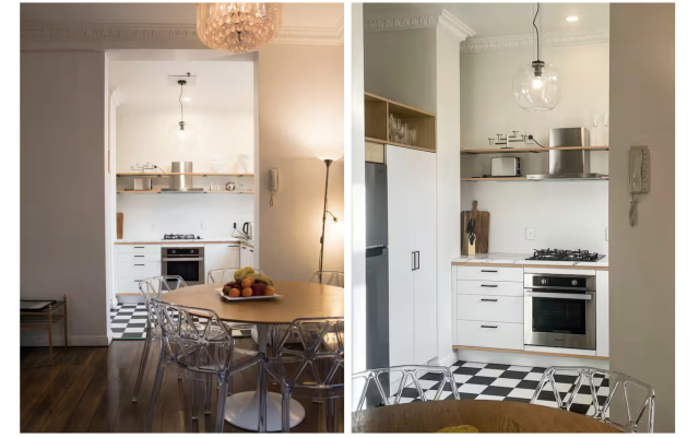 The lounge opens to the art-filled view while the fully equipped freshly renovated kitchen that has views of the gallery