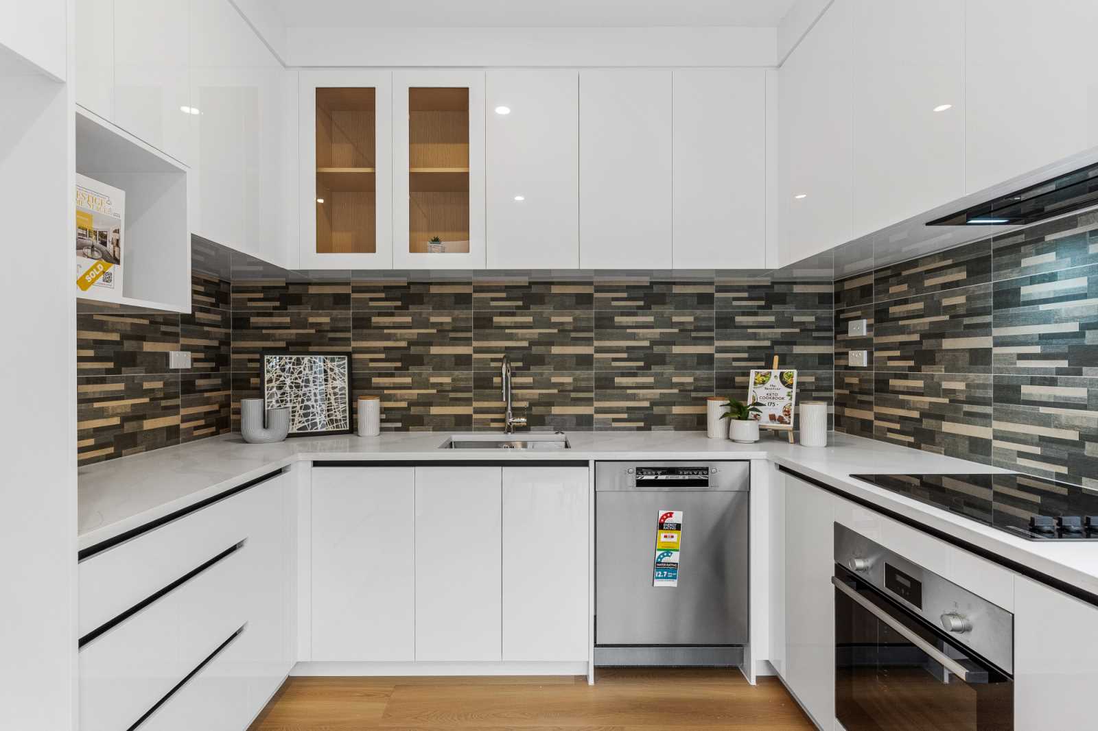Contemporary kitchen with Bosch appliances and stone benchtop