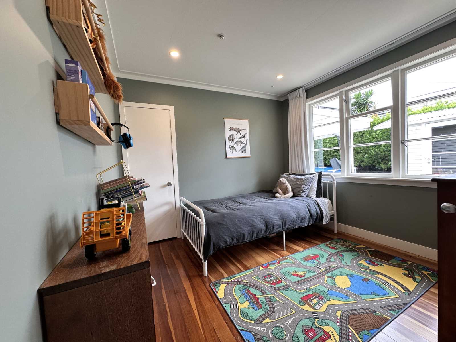 A very cool stand-alone office/sleep-out joins the large deck, featuring a wall of cork from Portugal. Complete with power and internet, it has made a perfect work-from-home space for us, but would also suit a teenage pad or additional single bedroom.