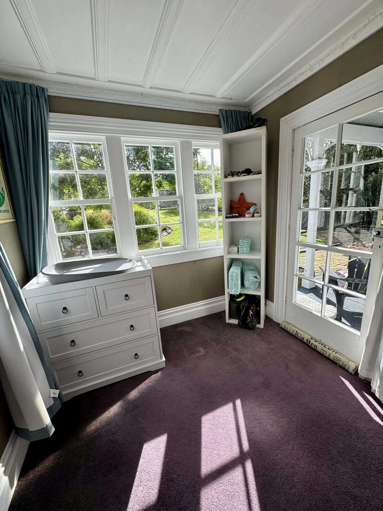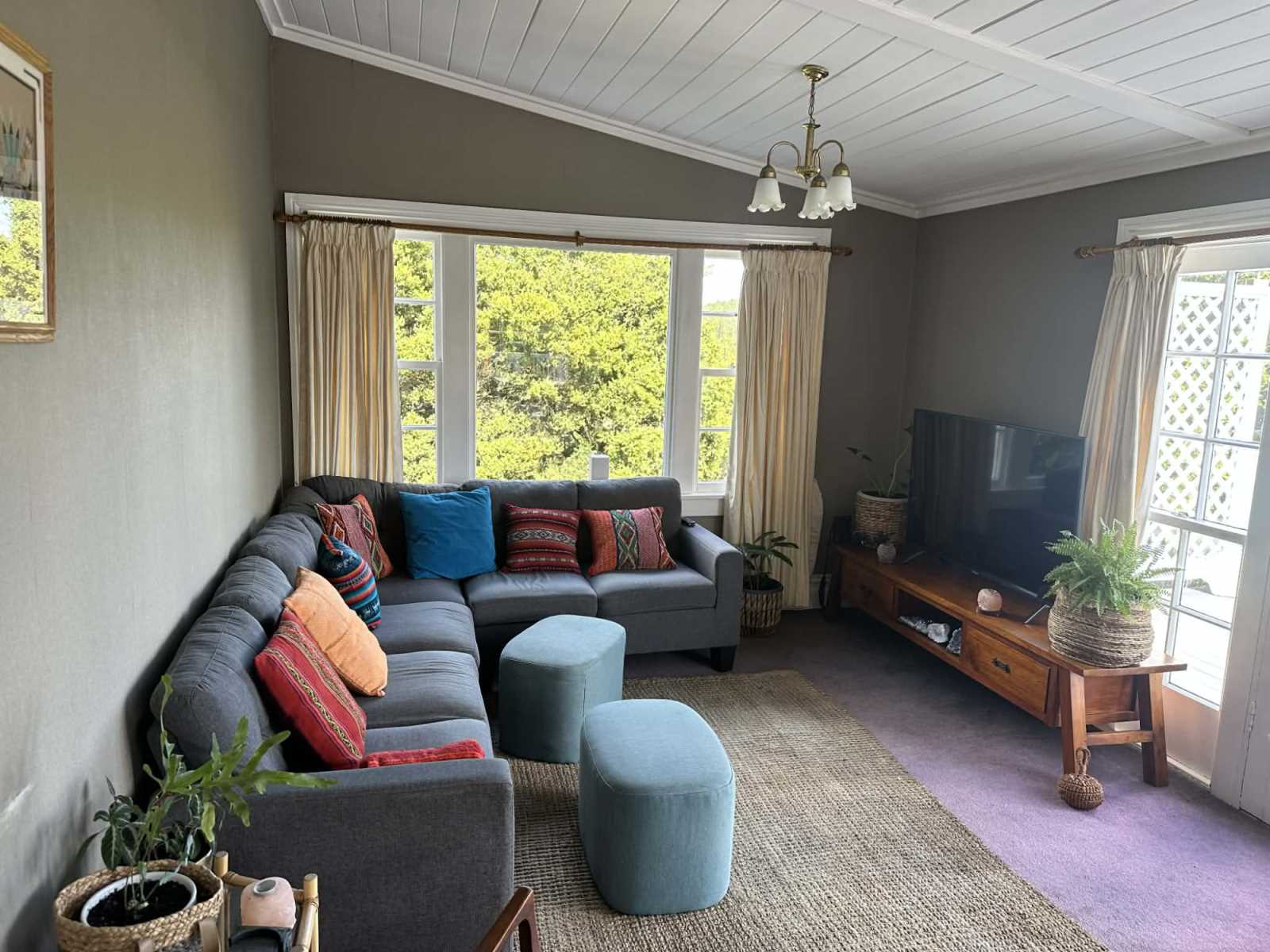 Positioned at one end of the property, the re-sited and renovated villa provides warm and comfortable living. The home includes two bedrooms, a bathroom, an office, and open-plan living. The kitchen features timber detailing and stone benchtops, while a wood burner adds warmth and charm. A generous verandah extends from the living area, offering a peaceful spot to unwind while taking in the elevated panoramic views across the surrounding landscape.