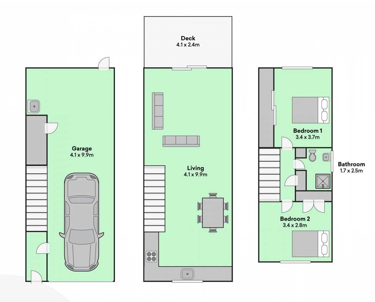 There’s plenty of space to park your cars with the garage and laundry taking up the entire bottom level, as well as generous storage under the stairs.