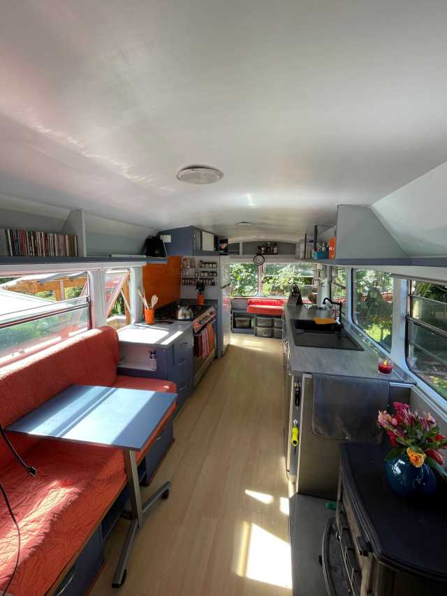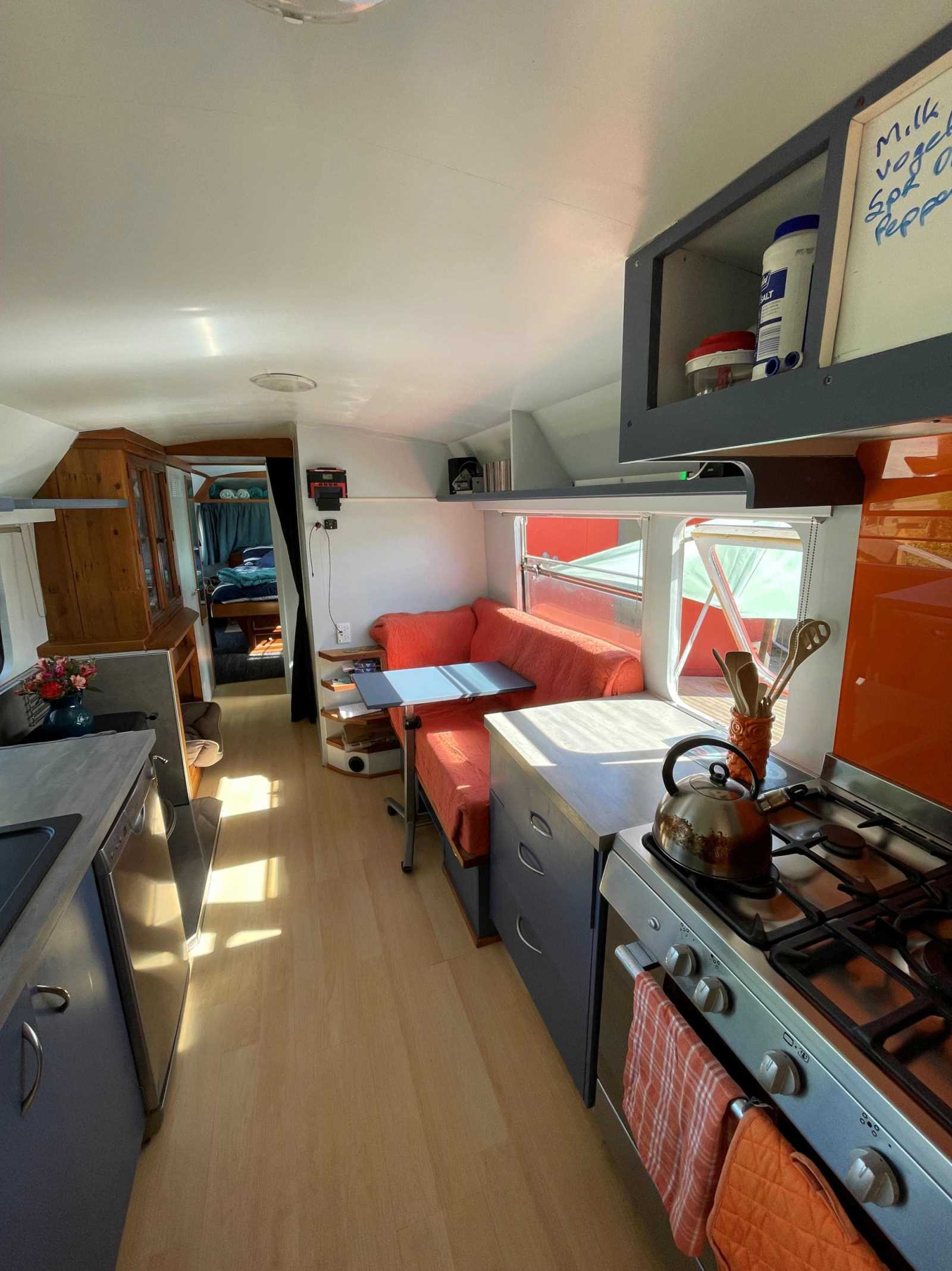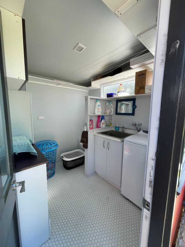 The kitchen consists of 900 wide full gas oven, a 2 way fridge freezer, that we run on gas. There is also a dishwasher. This property comes with plenty of storage space with a 20 foot container which holds the solar panels to run the system. The beds in both the bus and the sleep- out are built to allow storage space underneath. The sleepout has built in cupboards and wardrobes. The laundry includes a cassette toilet along with more storage and a washing machine which comes with the sale.