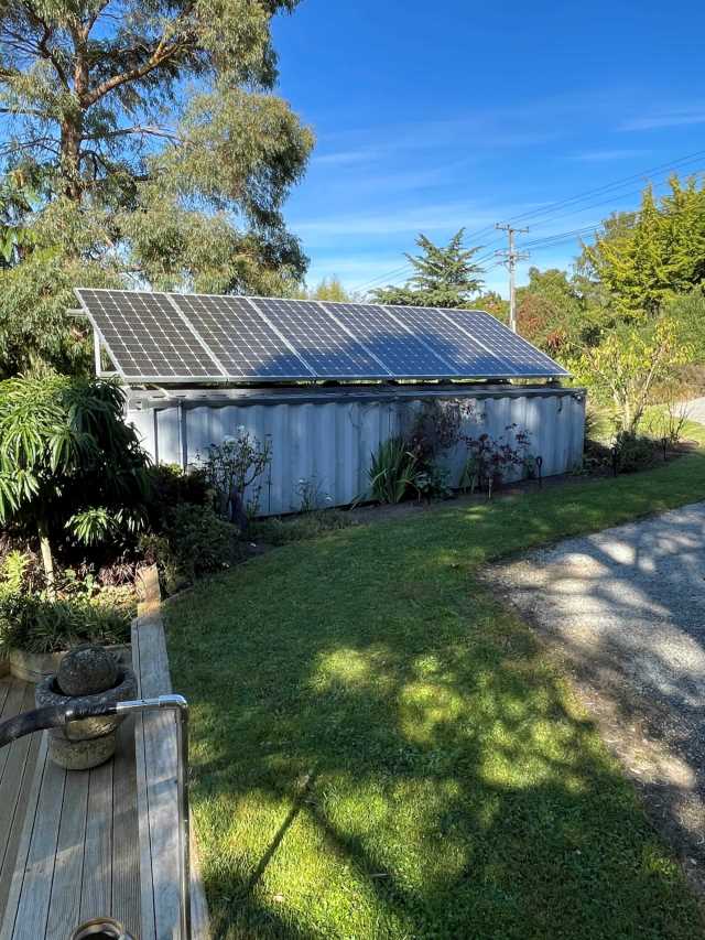 The off grid power consists of a 12 volt system which runs the lighting and toilet, with a 230 volt system for other electrical requirements. That system is set up as 48kw converter with 3 banks of 4 batteries each running in series and parellel .