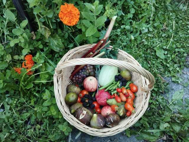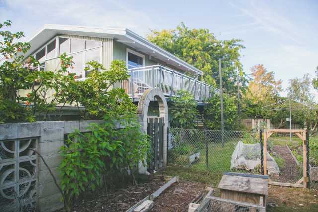 This quarter acre food-forest property has been lovingly cultured and maintained for the last thirteen years by following permacutlure and organic principles. It provides abundant foods year around including fruits, nuts, vegetables, herbs, and eggs.